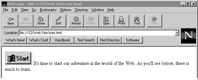 If you're using Netscape Navigator, use the Netscape home page as your benchmark. If you're not using Netscape Navigator, point your Web browser to http://www.netscape.com/.