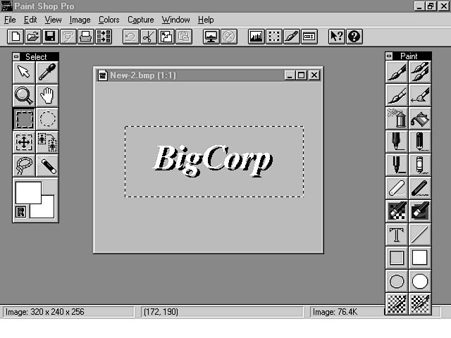 Before you save this graphic, you should make it as physically small as possible so that it works well on your Web page. To cut the image down a bit, select Paint Shop Pro's rectangular selector tool. Click somewhere near the top left corner of the graphic (at the point you want to make the new top left corner of your cropped image), and drag the mouse pointer to the other side (bottom right corner) of the image. When you release the mouse pointer, a thin box should appear around this slightly smaller portion of your graphic. From the menu, choose Image, Crop, and the graphic is cropped to that size. If everything went well, you have a smaller graphic that is just as useful for your Web site.