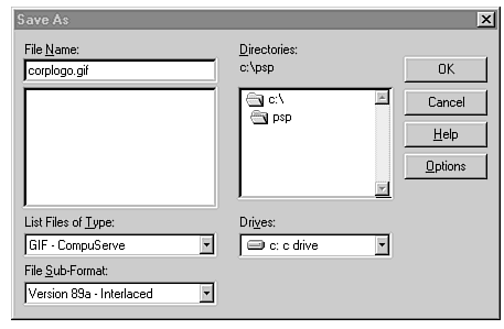 Figure 9.4 : Saving your graphic in a Web-compatible format.