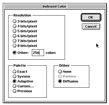 A good average size for a Web graphic, on the other hand, is between 10K and 30K-about one to three percent of the size of those high-color, high-resolution graphics. This could be tough.