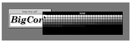Point to the color in the GIF that you want to turn transparent. As you hold down the mouse button, a color palette appears, with the current color selected. If you want that color to turn transparent, release the mouse button. If you want some other color to be transparent (or if you prefer to use no transparency), point to the color that you want to make transparent and release the mouse button. To turn off transparency, simply select the box marked None at the top of the palette.